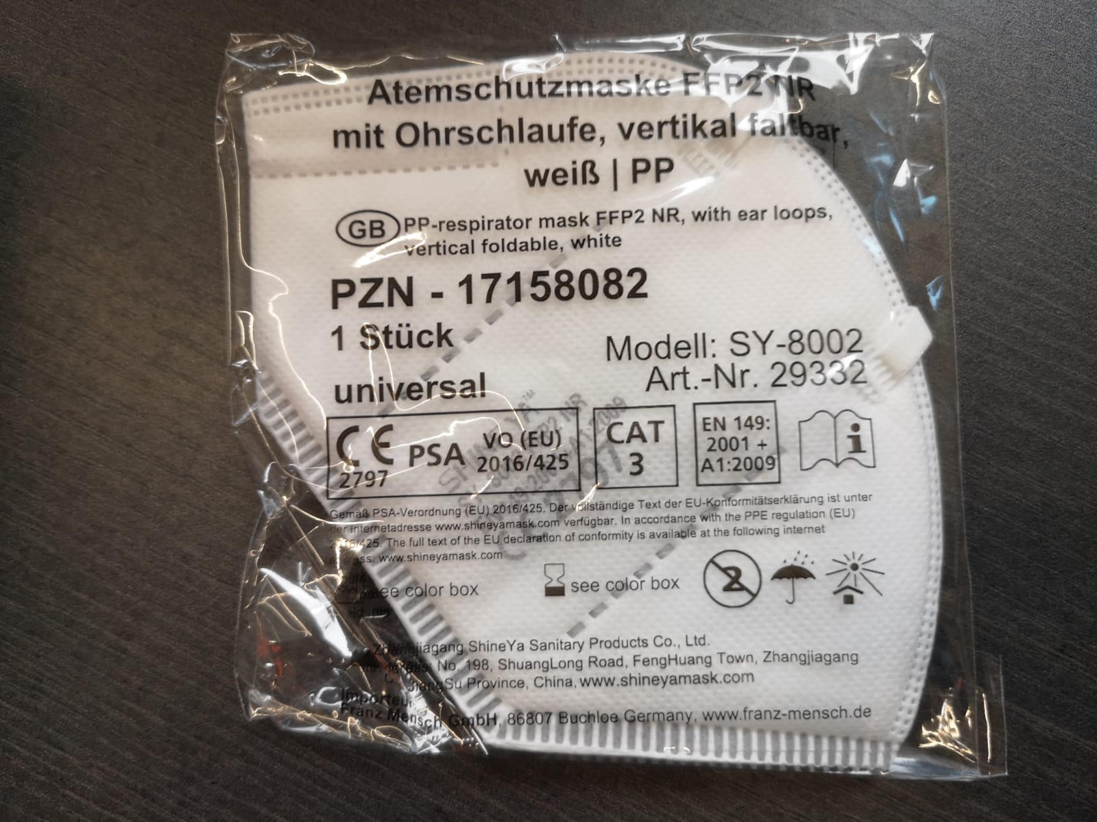 Produktinformationen "FFP2 Gesichtsmaske ShineYa"
