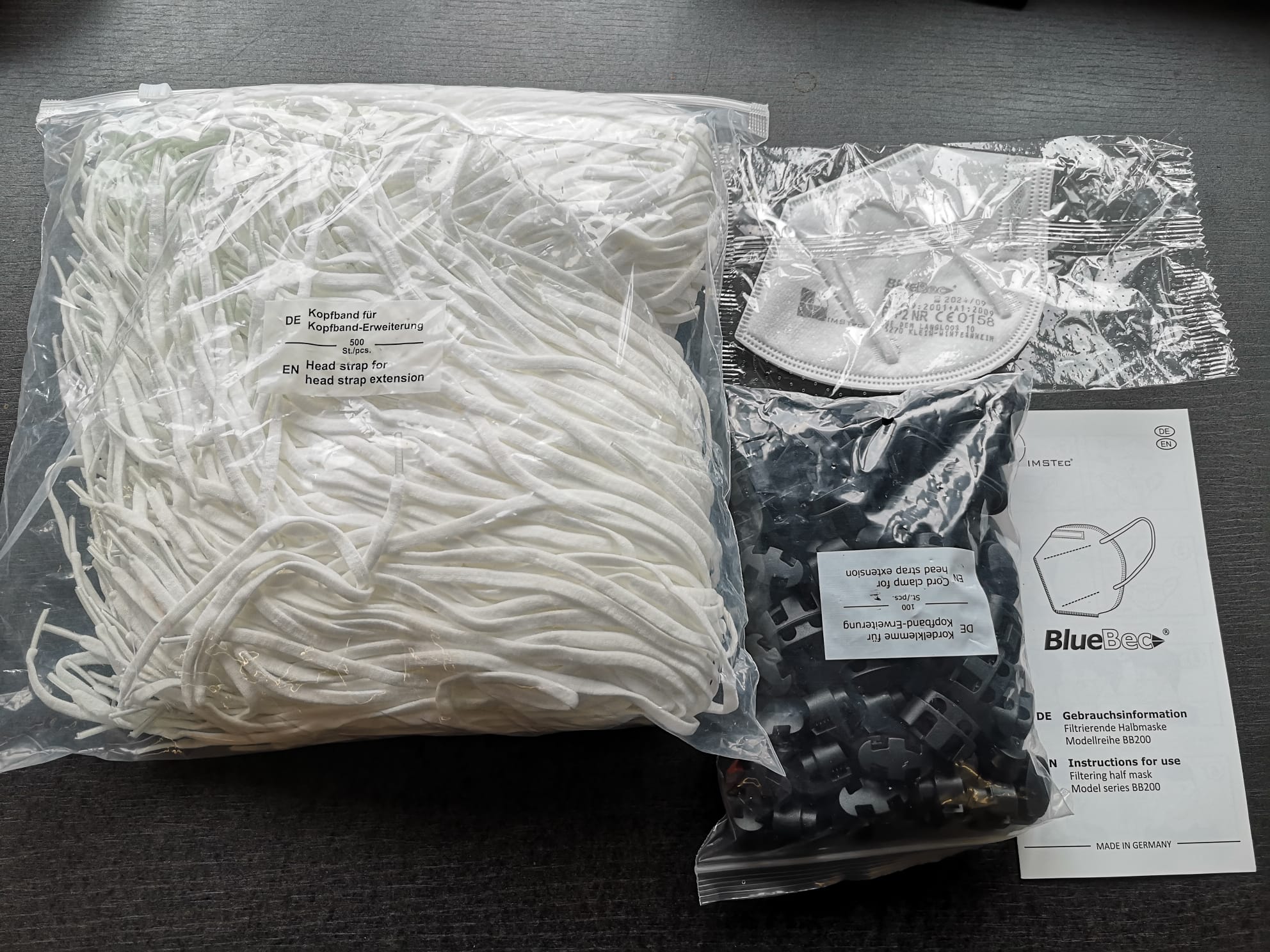 FFP2 Maske mit Kopfbanderweiterung und Kordelklemme für Kopfbanderweiterung