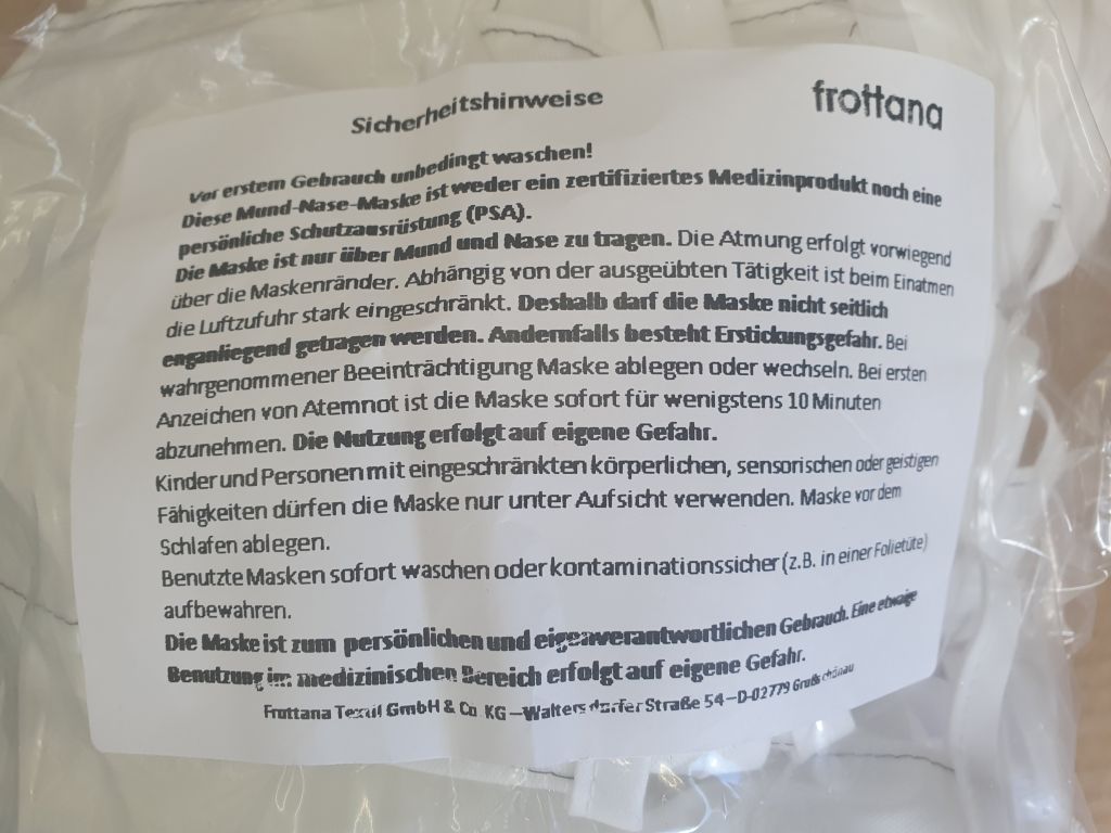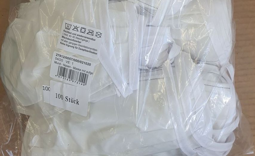 Mund- und Nasenmaske - viren-, bakteriendicht, waschbar (100 Stück je Packung)